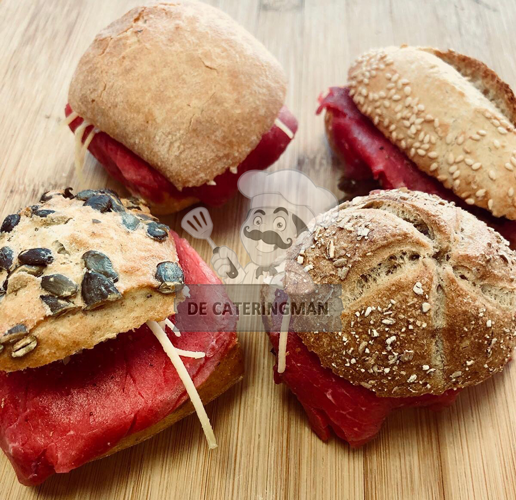 40 Grams Mini broodje met Runder Carpaccio, kruiden pesto, oude kaas & pijnboompitten